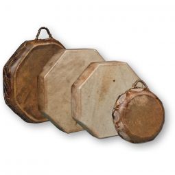 Handmade from genuine buffalo rawhide, this drum has a great sound and is just the right size for use when sweating. The buffalo hide gives it a superb sound and it won't go flat in the steam. Measures 13"x6-1/2" deep, includes a traditional drumstick with buckskin covered head.