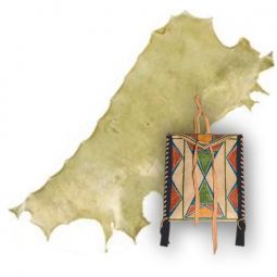 The Craft Tip information for this issue regards how to paint rawhide for parfleche manufacturing. At the end of the article, you will find resources and links for additional information related to parfleche painting. Native Americans have made rawhide storage containers for many generations. This specially prepared rawhide was referred to by the Europeans as "parfleche" (PAR-flesh). The material used was predominantly buffalo, but elk and beef rawhide can also be used. Parfleche containers were usually decorated with earth pigment paint.