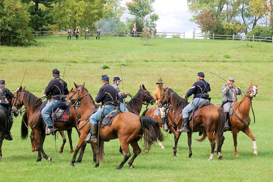 On Sunday, start the day with a Civil War era-style camp church service, followed by a memorial service for a Medal of Honor recipient. More skills and drills to be seen, and another 2 pm battle scenario.